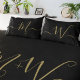 Elegant modern script with swashes for the couple monogram of this pillow case set. Black and a hue of gold. Simple, minimal design, a beautiful addition to your master bedroom bedding.