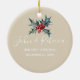 A beautiful christmas tree decoration with a holly and mistletoe design and "Married & Merry" typography. Perfect for your tree, or even to hang around your home for the winter season. Easy to edit the text on the reverse with your personal details. Lots of matching items such as photo cards, tags etc available in this design, please visit my shop to see everything.
