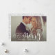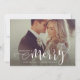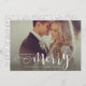 This modern holiday Christmas card is perfect for newly married couples. It features white whimsical script typography on the front and an elegant light grey and white swirl pattern on the back.