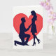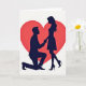 This card shows two black silhouettes of a couple in a tender moment, centered on the front. The man is down on one knee, reaching up to hold the woman’s hand like he’s asking a big question. She stands in high heels with a gentle, graceful pose, leaning slightly toward him as if she’s saying yes. Behind them is one large red heart that fills most of the background, set against a plain white space that makes the scene easy to focus on. There’s no text on the front, so the picture does all the talking and leaves room for your own words inside. It feels meaningful because it captures that mix of nerves, hope, and closeness that comes with choosing someone ❤️. It’s a simple way to show deep affection, whether it’s for a partner or someone you care about 🥰, and it’s a sweet way to share Valentine’s Day sentiments.