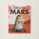 Take a Trip to Mars vintage travel poster. Martian exploration vacation poster featuring a mars lander on the red planet.