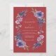 A rich marsala background creates a moody and sophisticated backdrop for this floral design. Watercolor clusters of periwinkle lupines and lavender wildflowers decorate the scene with painterly detail. This atmospheric palette is ideal for a romantic winter event. Delicate green leaves provide a natural contrast to the deep red and purple tones.