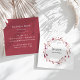 Elegant nature inspired design in a unique square format features your name and business name, title or occupation encircled by a burgundy and peach watercolor botanical wreath. Add your full contact information, including hours if applicable, to the reverse side in white on marsala berry. Example shown for brow techs or aestheticians.