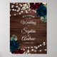 Marsala & Navy Flowers Rustic Wood Wedding Welcome Poster