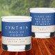 These personalized Marseille Bleu wedding whiskey glasses can be customized as wedding guest favors for everyone at your celebration or make excellent bridal party favors and thank you gifts. A double sided design allows you to add separate text, front and back. The modern design of a luscious shade of navy blue paired with a soft ecru is the backdrop for adding CHEERS! or WELCOME and in the smaller font below, BEST DAY EVER or TIME TO CELEBRATE etc. For bridal party gifts, use the larger white font for the first name of each wedding party member and the smaller font just below for your wedding party member's titles such as bridesmaid, groomsman, best man or mother of the bride. Dark blue text on the lower ecru portion is the perfect place to add the names of the bride and groom and the wedding date. The reverse side of these custom wedding whiskey glasses has up to four lines in white on the navy blue where you can add something like THANK YOU FOR CELEBRATING WITH US or your own short message, while the bottom blue text on ecru can be a simple WITH LOVE AND THANKS and the bride and groom's names again.