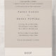 This wedding invitation exudes classic elegance with its subtle classic calligraphy monogram. The monogram, featuring the initials of the happy couple, is elegantly displayed on the front of the invitation. The invitation itself is crafted from high-quality cardstock and features a timeless font and simple, yet sophisticated design. The traditional typography adds a touch of elegance and adds to the overall classic feel of the invitation.