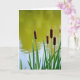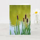 This card shows a calm wetland scene where a cluster of slender water plants stands close together like friends leaning in ❤️. Tall green leaves rise from the lower foreground, forming a soft base that guides your eye upward. Above them, several long, brown seed heads sit side by side, their fuzzy cylinders and pointed tips adding a gentle, affectionate closeness to the grouping. The background is an out-of-focus stretch of water that shifts from a light yellow-green near the top into a cooler blue-gray toward the middle, giving the scene depth. A few faint ripples drift across the surface, like a quiet conversation passing between the plants and the water 🌼. Any text would sit neatly near the top in a small, light-colored font that stays readable against the brighter green area. The brown seed heads are arranged at slightly different heights, with soft natural light catching their edges against the blurred water.