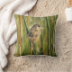 A throw pillow with a photograph of a marsh wren (Cistothorus palustris) on the front, and facts about the bird on the back.