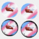 A background in the colors of the Transgender Flag, light blue, light pink, white, light pink, and light blue sketched diagonally from bottom left to top right. In the foreground, a red brick engraved M P. J, the initials of Trans woman and LGBTQ rights activist Marsha P. Johnson who is thought to have thrown the first brick of the stonewall protests. The image symbolizes the integral and inextricable part that Trans people have played in the fight for equal rights. in the bottom right corner is the signature of the artist, Alex Leslie