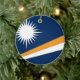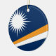 The Marshall Islands flag is a blue field with two stripes radiating from the lower hoist-side corner and on the left corner a shining star. The used colors in the flag are blue, white, orange. The proportion of the Marshall Islands flag is 10:19. The Flag of the Marshall Islands was adopted in 1979. The first use of the current flag design was in 1979. The last change to the current Marshall Islands flag design was in 1979.