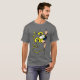 My 11 yo wore adult XL (5’7” 165#). The 8yo is small framed. She wore adult small and tied it in the back. Grandma wore adult large with long sleeve shirt underneath. Tall girl adult medium. Dark haired male adult large. Good quality dark Heather gray, Gildan brand shirt. -it was next up from basic choice and cost about $20 per shirt. Not too thick or thin. Washed and dried well, no major shrinkage. Not see-through. Can wear a bra under it fine. Screen print is just as shown and well done, front and back.