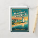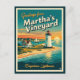 Martha’s Vineyard MA, Edgartown Lighthouse “The Handshake City” Retro 1920s Whimsical Colorful Postcard Art