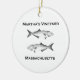 This saltwater fishing themed Martha's Vineyard Massachusetts logo includes a vintage style bluefish illustrations. Martha's Vineyard is known for its fishing, beaches, landscapes, nautical artwork, architecture, and other attractions.