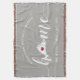 Show some hometown pride with this cute rustic gray throw blanket featuring "home" in white calligraphy script lettering with a silhouette map of Martha's Vineyard standing in for the letter "O." A red heart illustration inside the state map completes the design; you can change the position of the heart to your home city by opening the design tool and dragging the heart shape to your favorite spot. Personalize with your home city, family name and year established to create a perfect and memorable housewarming gift or addition to your new home.