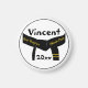 Customize the Martial Arts 2nd Degree Black Belt Magnet with the name of your martial artist, team, dojo or school name or specific martial art. Add a date to commemorate a second degree blackbelt promotion test in karate, taekwondo, kung fu, ju jitsu or judo. This custom martial arts magnet features a digitally enhanced photograph of a martial arts belt with two gold bars or stripes and a white background.