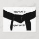 The Martial Arts Basic Black Belt Postcard can be customized to create your own black belt promotion test invitation, black belt announcement, congratulations card, birthday party invitation or black belt note cards. Add the name of your martial artist, team name, specific martial art or greeting.