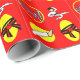 Bold red gift wrap paper for wrapping Martial Arts birthday and Christmas presents features a male Martial Artist and other Martial Arts symbols.
