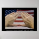 Martial Arts Inspirational Poster which states "Concentration is the secret of strength"~Ralph Waldo Emerson. This custom motivational print features a digitally enhanced photograph of triangle hands with an American flag background.