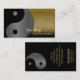 ©2011 Pam's Designs. This stylish & bold silver, gold, & black martial arts business card provides a stunning, professional look for your business. This business card is fully customizable and can be personalized to meet your business needs. It's great for karate, tai kwon do, and other martial arts styles. This business card features a black and silver yin yang with stars trailing behind it over a rippling gold background with a black gradient. This is a bold and elegant design that is professional and eye catching.