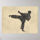 This Karate kicking fella on an weathered background is just the ticket for martial arts aficionados.