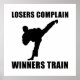 Check out this funny custom sports design on tees, shirts, mugs, pajamas, gifts and other apparel. Martial artists from tae kwon do to karate know that losers complain and winners train.