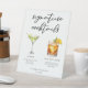 This chic signature cocktails pedestal sign features simple black typography above 2 drinks and their ingredients for your wedding bar. A cute Martini and Dark & Stormy drawing add a cool flair to your bar menu. Complete with the couple's names and date for their reception.