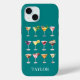 This case is so fun! It has 12 different types of martinis in watercolor on a teal background and your name in a modern CAP font in white. You gotta get it!!!