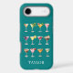 This case is so fun! It has 12 different types of martinis in watercolor on a teal background and your name in a modern CAP font in white. You gotta get it!!!