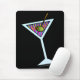 A brightly colored martini glass filled with a wavy rainbow of cocktail fun and garnished with the classic cocktail olive on a martini pick. Perfect for any party or happy hour celebration.