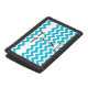 This trendy blue item features a icon of a martini in a glass with an olive! The background features a repeating teal and white zig-zag chevron pattern with a white area featuring your own name in a blue script font! Open the customization editor to change the color of the light blue chevron pattern!