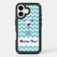 This trendy blue phone case features a icon of a martini in a glass with an olive! The background features a repeating blue and white zig-zag chevron pattern with an area for your own name or short message! Open the full editor to change the chevron color or adjust the font size and style!