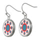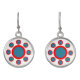 Design inspired by the beautiful henna pattern my mom used to draw on my hands and feet. White drop earrings featuring a traditional south Indian "maruthani" circle henna pattern in red, white and blue.