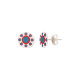 Features a traditional south Indian "maruthani" circle pattern in red, white and blue.