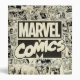 This retro Marvel Comics pattern features the vintage Marvel Comics logo on top of various black and white comic book pages, featuring Captain America, Spider-Man, Iron Man, Daredevil, Luke Cage, and Iron Fist.