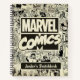 This retro Marvel Comics pattern features the vintage Marvel Comics logo on top of various black and white comic book pages, featuring Captain America, Spider-Man, Iron Man, Daredevil, Luke Cage, and Iron Fist.