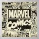 This retro Marvel Comics pattern features the vintage Marvel Comics logo on top of various black and white comic book pages, featuring Captain America, Spider-Man, Iron Man, Daredevil, Luke Cage, and Iron Fist.