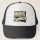 This retro Marvel Comics pattern features the vintage Marvel Comics logo on top of various black and white comic book pages, featuring Captain America, Spider-Man, Iron Man, Daredevil, Luke Cage, and Iron Fist.