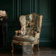 Mary Antoinette Delectable, Portrait & Floral, Elegant Lady sitting on a vintage chair, decoupage tissue paper.