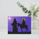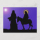 Celebrate the true meaning of Christmas. Joseph leading Mary's mule across the desert en route to Bethlehem, following the North Star. Silhouette against a night background. Multi color drawing.