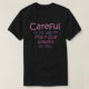 My 11 yo wore adult XL (5’7” 165#). The 8yo is small framed. She wore adult small and tied it in the back. Grandma wore adult large with long sleeve shirt underneath. Tall girl adult medium. Dark haired male adult large. Good quality dark Heather gray, Gildan brand shirt. -it was next up from basic choice and cost about $20 per shirt. Not too thick or thin. Washed and dried well, no major shrinkage. Not see-through. Can wear a bra under it fine. Screen print is just as shown and well done, front and back.