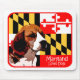 Graphic art depiction of a Beagle dog against the backdrop of a stylized Maryland flag