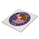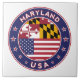 Badge of Maryland with flag of Maryland and flag of USA colors, rounded shape.