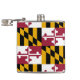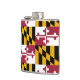This flask features the distinctive gold, black, red and white pattern Maryland State Flag as it's background. Show your Maryland state pride with this handsome flask!