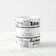 A modern and stylish item personalized with your first and last names in a thin and elegant font style on a white stripe... Custom mugs, espresso mugs, steins... unique to you! A typography design with a tasteful touch . Color options available. Different sizes available.