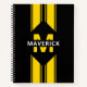 Personalized masculine sketchbook/notebook featuring a stylish black background, yellow sports stripes, your initial, and name.