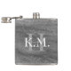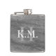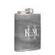 A tone on tone monogram in shades of gray and white, decorates this Liquid Courage Flask on a dark gray background, making it a very cool and masculine gift. It is perfect for the groomsmen in the wedding party, for a boss, father-in-law or your dad. Just add a bottle of his favorite to make it extra special.
