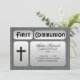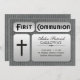 Masculine Silver Gray Pinstripes First Communion Invitation