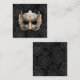 A highly detailed Venetian mask features elegant white and gold ornate designs with pearls and gemstones, set against a dark, damask-patterned background. The intricate craftsmanship and luxurious elements exude a sense of mystery and sophistication.