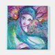 Colorful ,whimsical ,unique, artistic watercolor painting in bright aqua blue ,green,teal,pink,fuchsia,white ,sparkling iridescent colors,golden and silver foil, inspired from Carnival of Venice.2009.