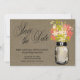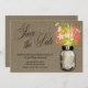 Mason Jar Save the Date: Perfect for a country style wedding or maybe you just love Mason Jars! Old vintage Mason Jar with shades of Cream, Salmon / Coral, and Dark Lime / Chartreuse wildflowers. A Dark Burlap Background is set. If you have any questions on this design or want a color change please email me paula@labellarue.com PICK YOUR PAPER CHOICE: This is set to print on Basic however you can pick an alternate cardstock.